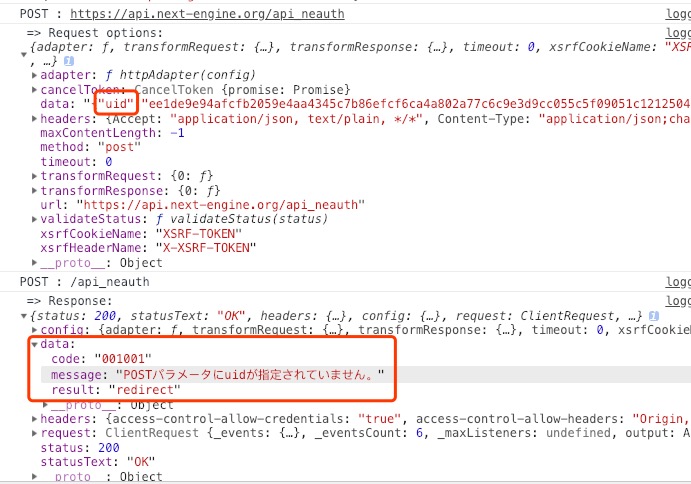 その際、uidはNEログインuid・state取得APIで取得したuidを使用されているか再度ご確認お願いいたします。
