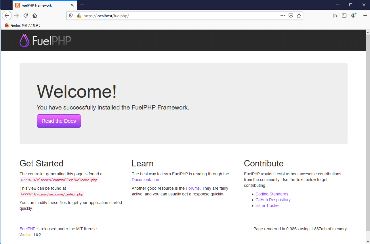 ちなみにfuelPHPのWelcomepページは下記となっております。